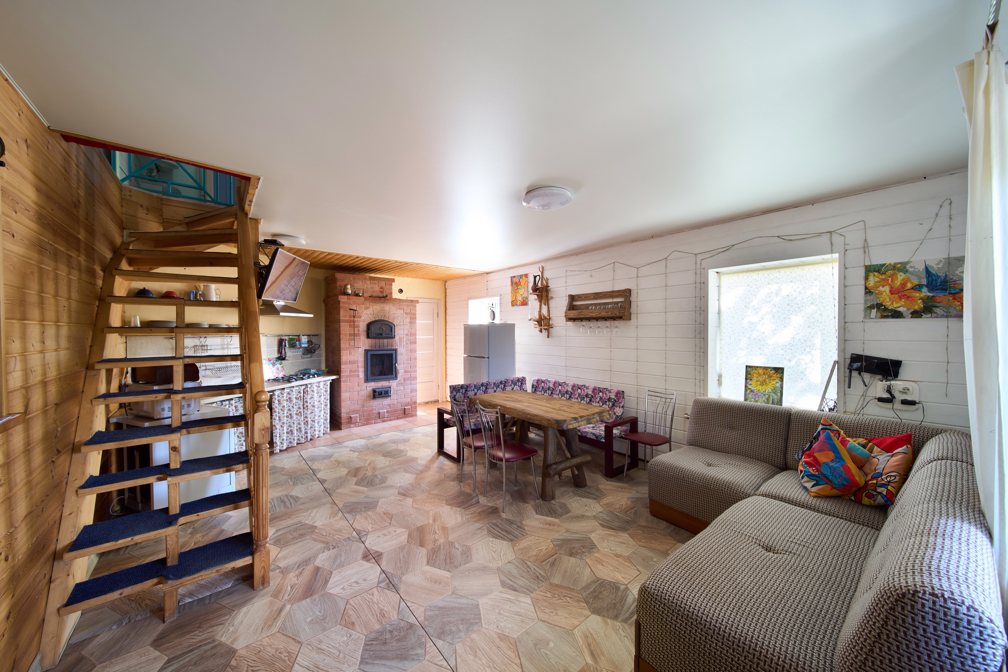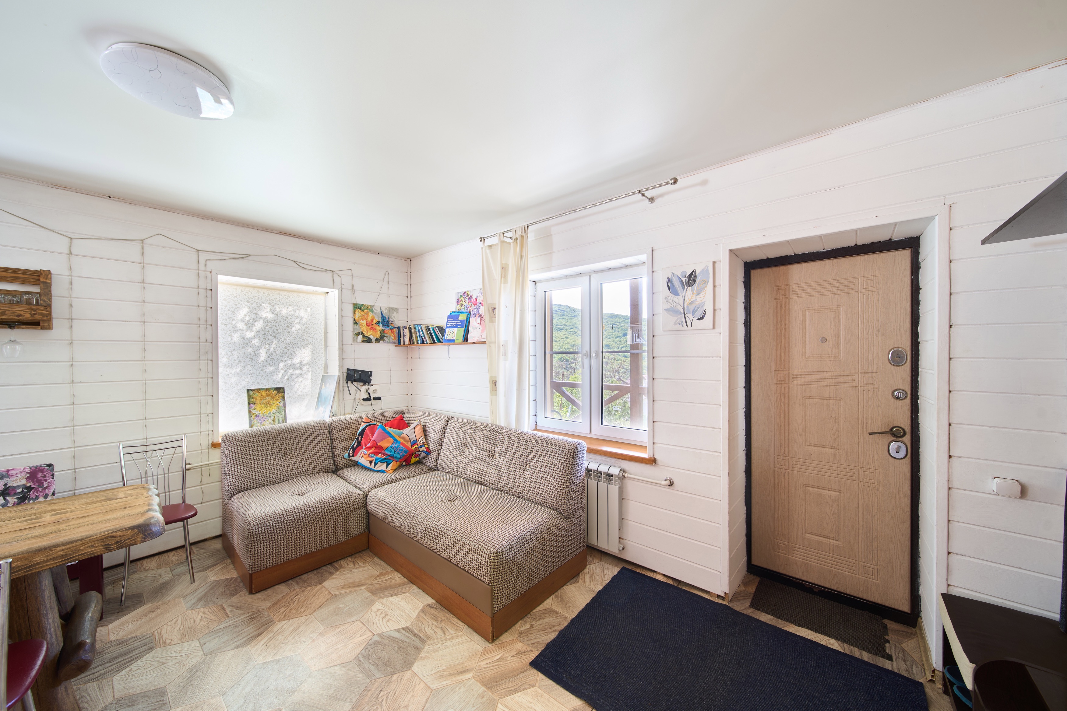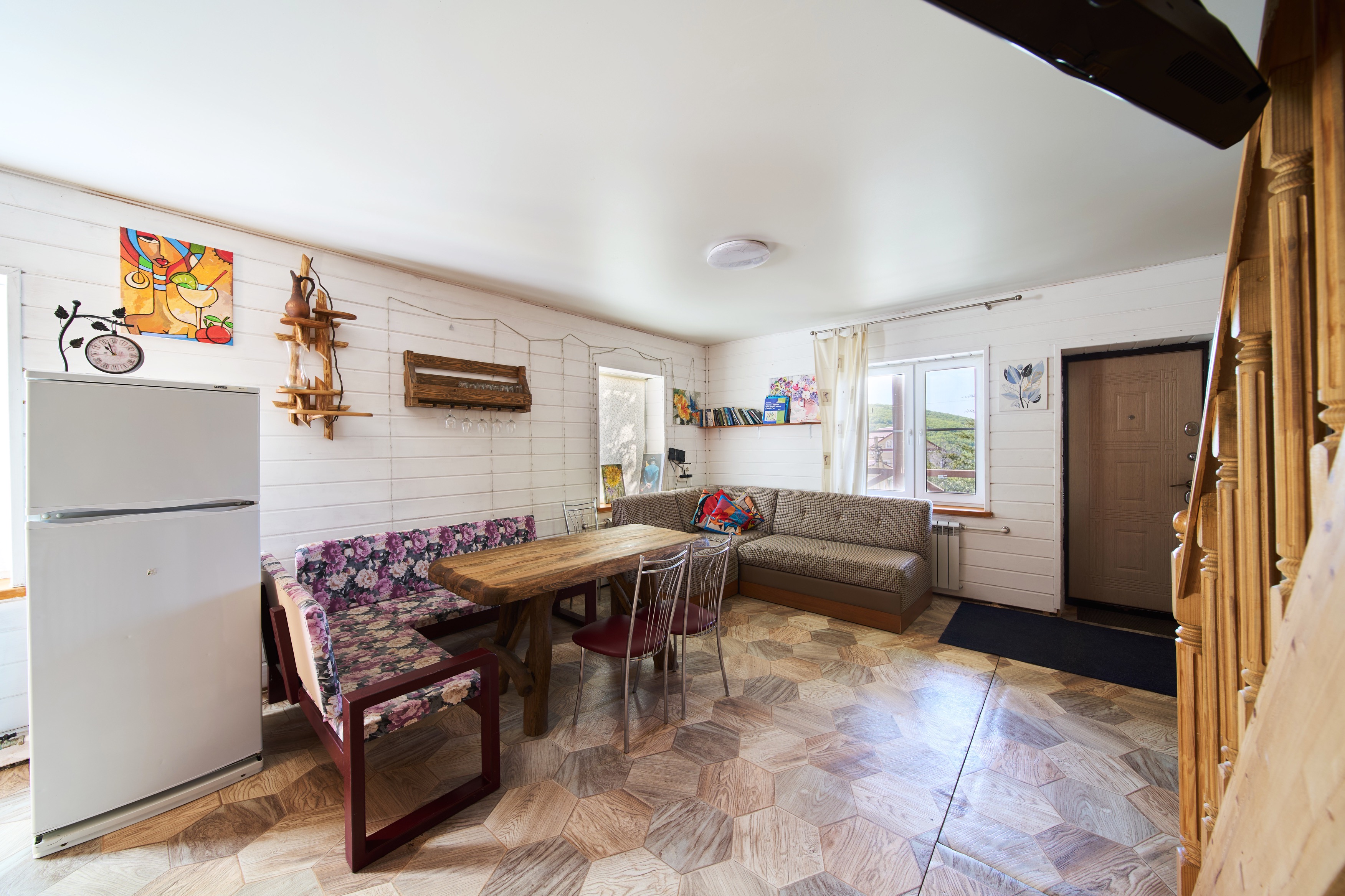 Уютный дом для небольшой компании (4 - 8 человек) или семейного отдыха. 1 этаж - гостиная с диваном и телевизором (спутниковое ТВ - Триколор) - кухня со всем необходимым (холодильник, варочная панель, микроволновая печь, чайник, посудомойка, а так же посуда, приборы) - туалет 2 этаж - 3 спальни, в каждой двуспальная кровать и дополнительные детские места - ванная комната На территории - беседка с мангалом - банный чан (оплачивается отдельно) - баня (оплачивается отдельно) - парковка Дополнительные услуги: - конные прогулки - прокат квадроциклов - экскурсии на внедорожниках (Ай-Петри, Большой каньон Крыма).